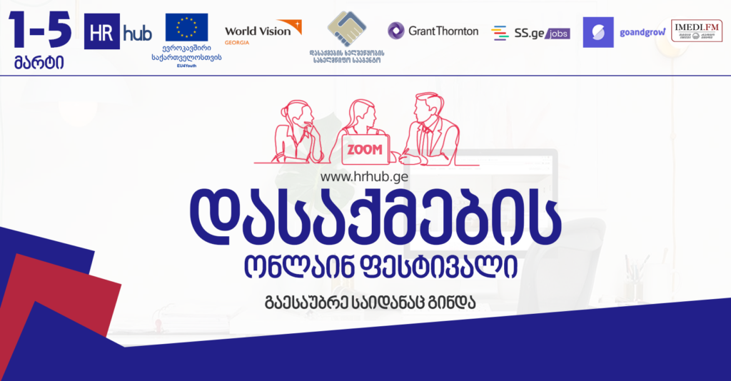 10 ივლ სხვადასხვა დასაქმების ონლაინ ფესტივალი ივლისი 10, 2024 By CUE 1-დან 5 მარტის ჩათვლით, HR hub – ისა და World Vision საქართველოს ორგანიზებით დასაქმების ონლაინ ფესტივალი – ,,გაესაუბრე საიდანაც გი... სრულად წაკითხვა