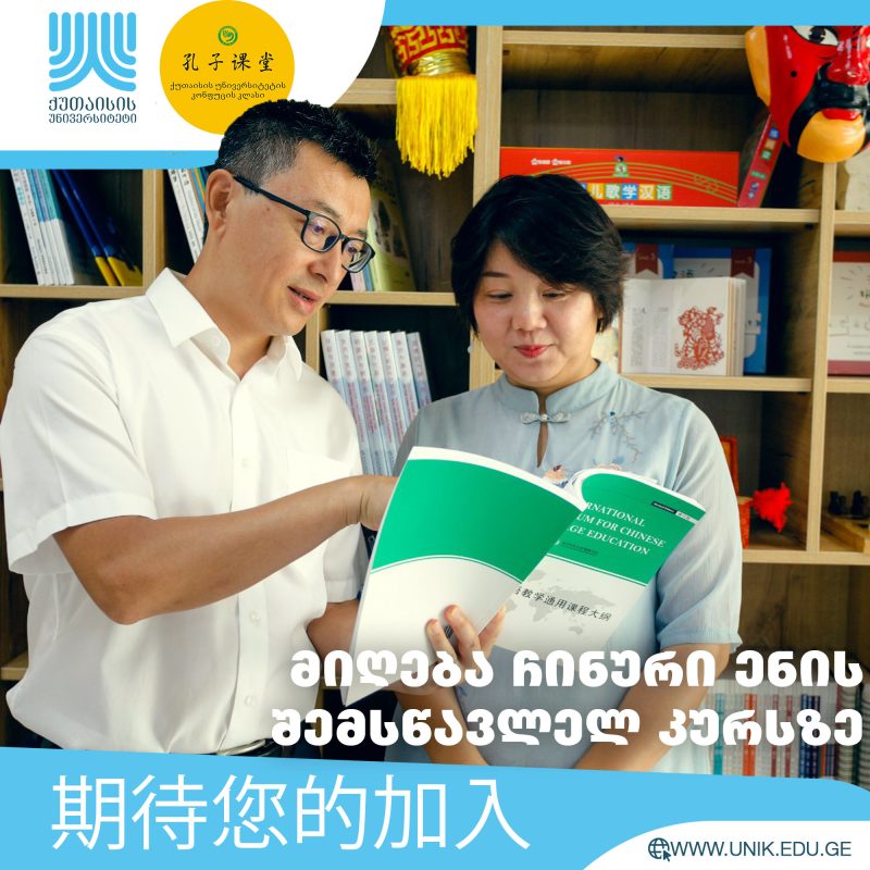 06 თებ სხვადასხვა ქუთაისის უნივერსიტეტის კონფუცის კლასი ჩინური ენის კურსზე მიღებას აცხადებს ნოემბერი 6, 2024 By CUE ქუთაისის უნივერსიტეტის კონფუცის კლასი ჩინური ენის სასწავლო კურსზე მიღებას აცხადებს. კურსი მოიცავს როგორც სტანდარტულ სწავლებას (HSK I), ... სრულად წაკითხვა