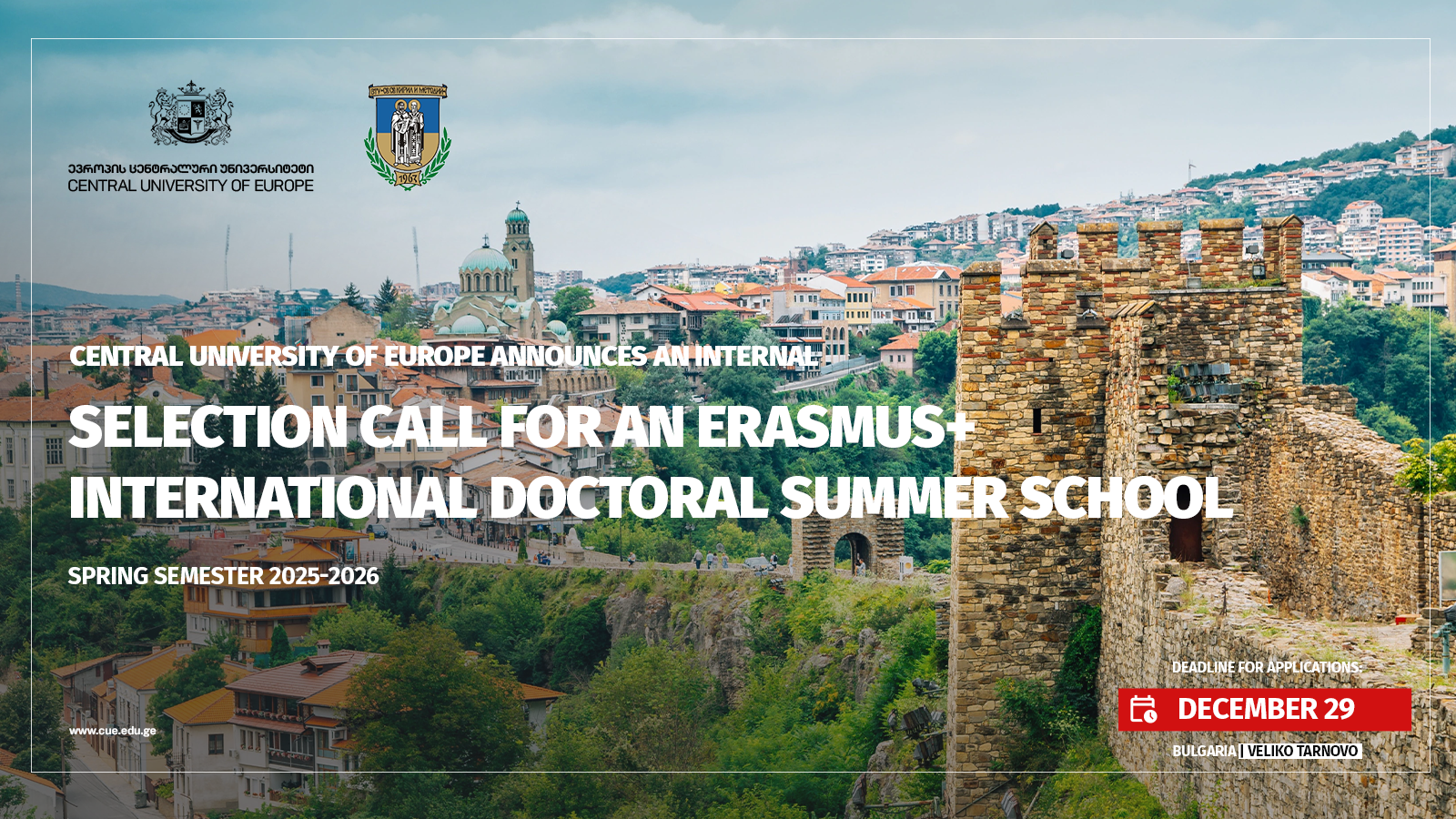 Central University of Europe announces an internal selection call within the Erasmus+ programme for participation in an international Doctoral Summer School to be held at St. Cyril and St. Methodius University of Veliko Tarnovo, Bulgaria.