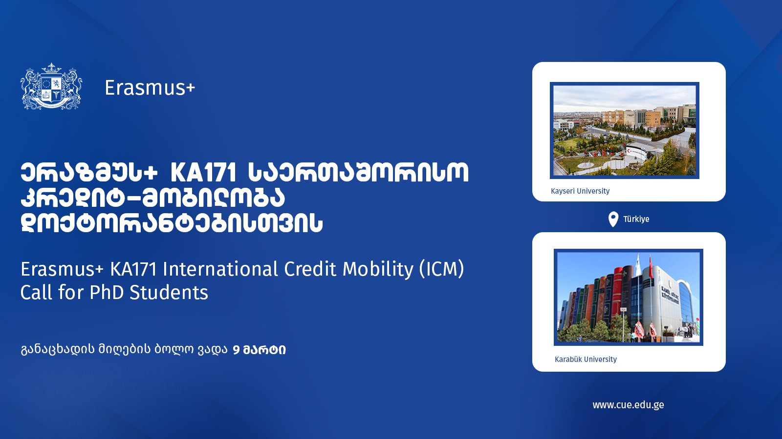 Central University of Europe (CUE) announces a call for applications for students of the PhD program in Economics. Within the framework of the Erasmus+ KA171 program, it is possible to undertake a short-term study and research visit at two partner universities in Turkey.