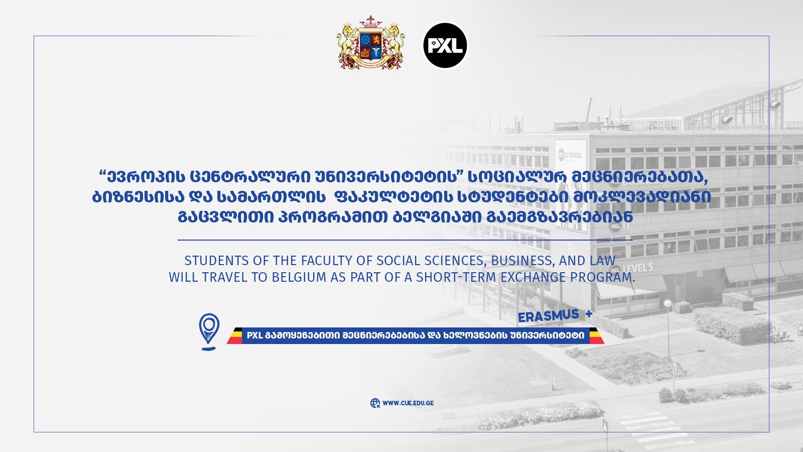 Within the framework of the Erasmus+ program of the Central University of Europe, the selection of students for short-term blended mobility at PXL University of Applied Sciences and Arts (Hasselt, Belgium) has been completed.