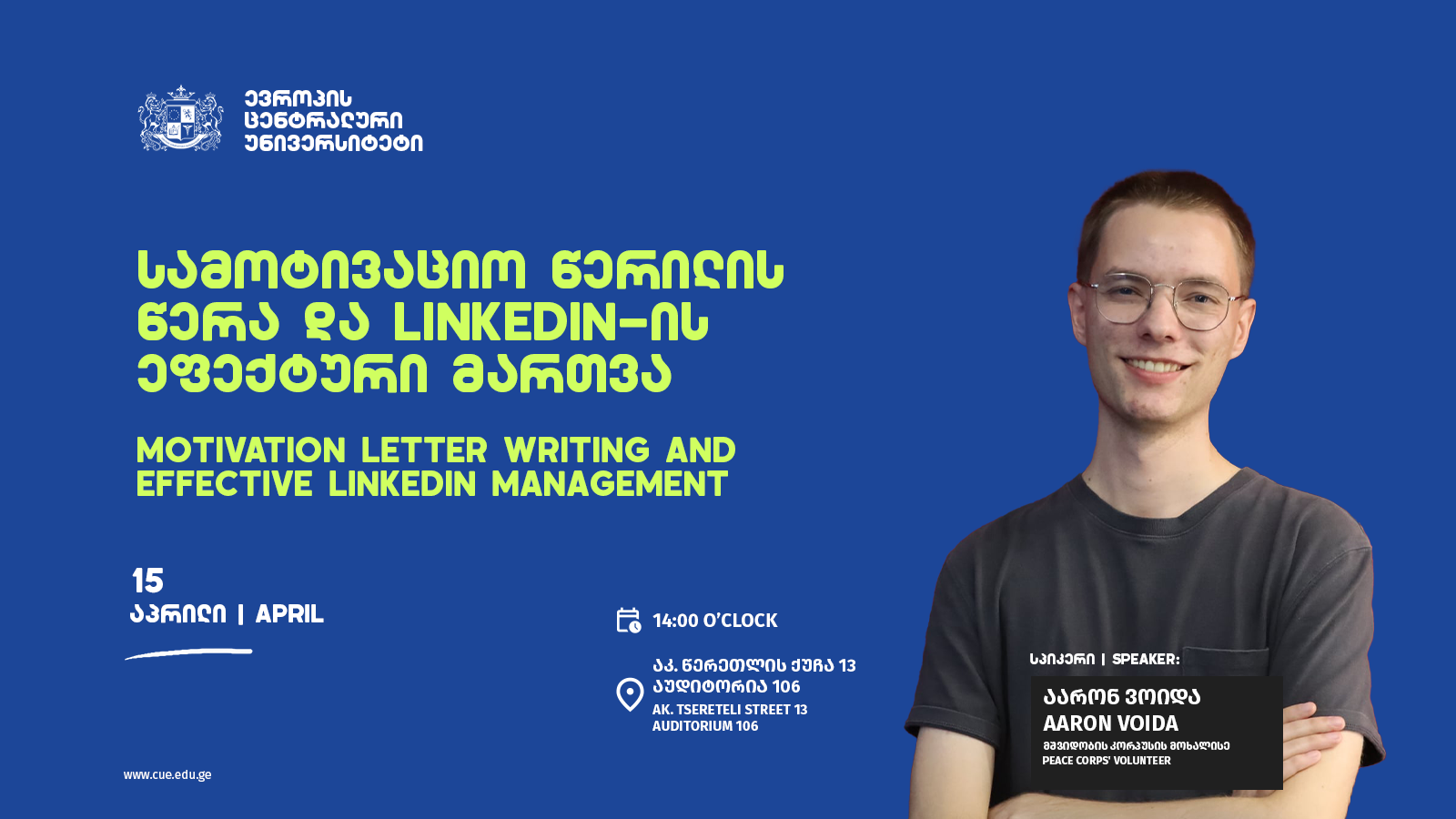 Location: “Central University of Europe”, 13 Akaki Tsereteli Street.