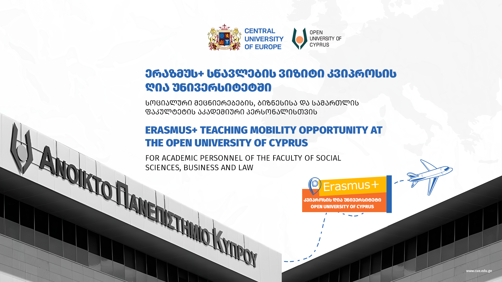 კვიპროსის ღია უნივერსიტეტი (Open University of Cyprus, OUC) აცხადებს განაცხადების მიღებას Erasmus+ საერთაშორისო კრედიტ მობილობის (ICM) პროგრამის ფარგლებში 2025–2026 სასწავლო წლის განმავლობაში.