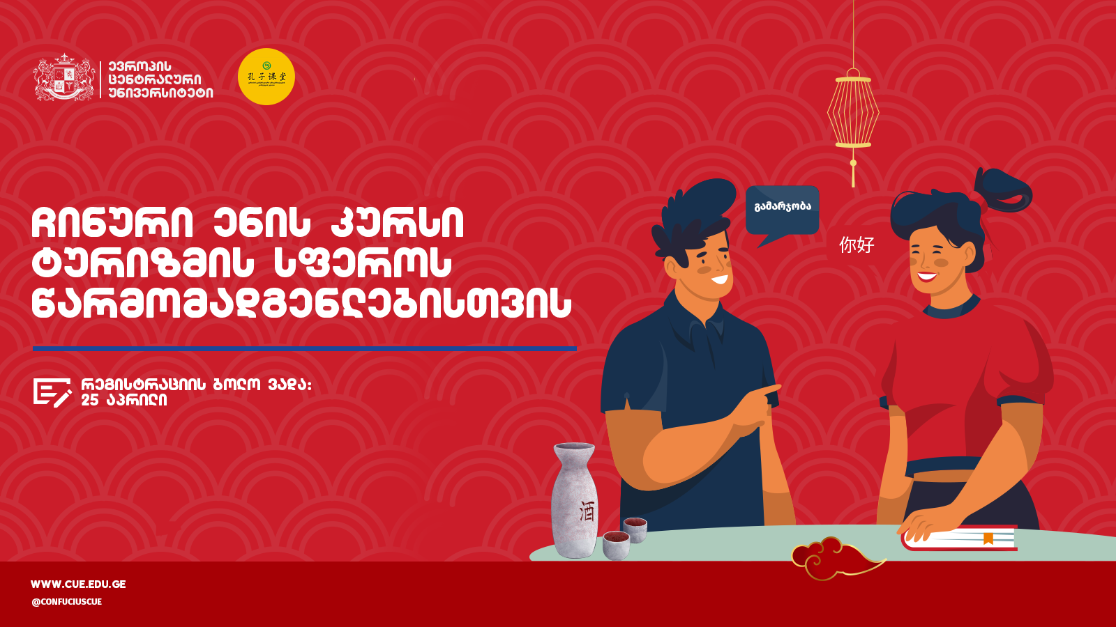 “ევროპის ცენტრალური უნივერსიტეტის” კონფუცის კლასი აცხადებს მიღებას ჩინური ენის კურსზე, რომელიც განკუთვნილია ტურიზმის სფეროში დასაქმებული და დაინტერესებული პირებისთვის.