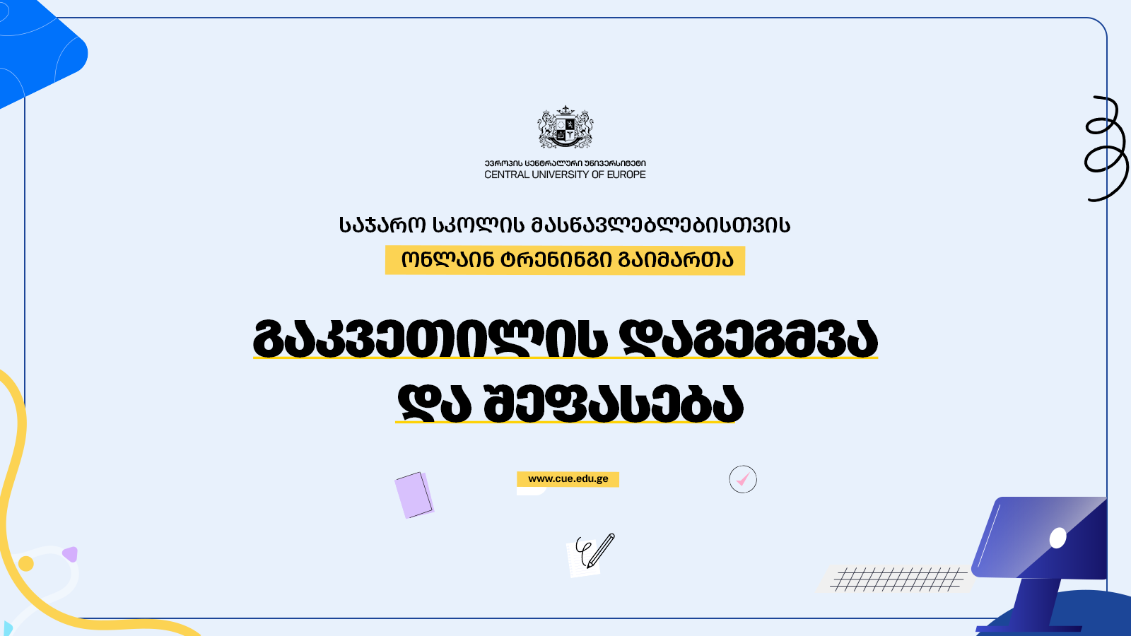 „ევროპის ცენტრალური უნივერსიტეტისა“ და „ევროპის უნივერსიტეტის“ ორგანიზებით, საჯარო სკოლის მასწავლებლებისთვის ონლაინ ტრენინგი – „გაკვეთილის დაგეგმვა და შეფასება“ ჩატარდა.