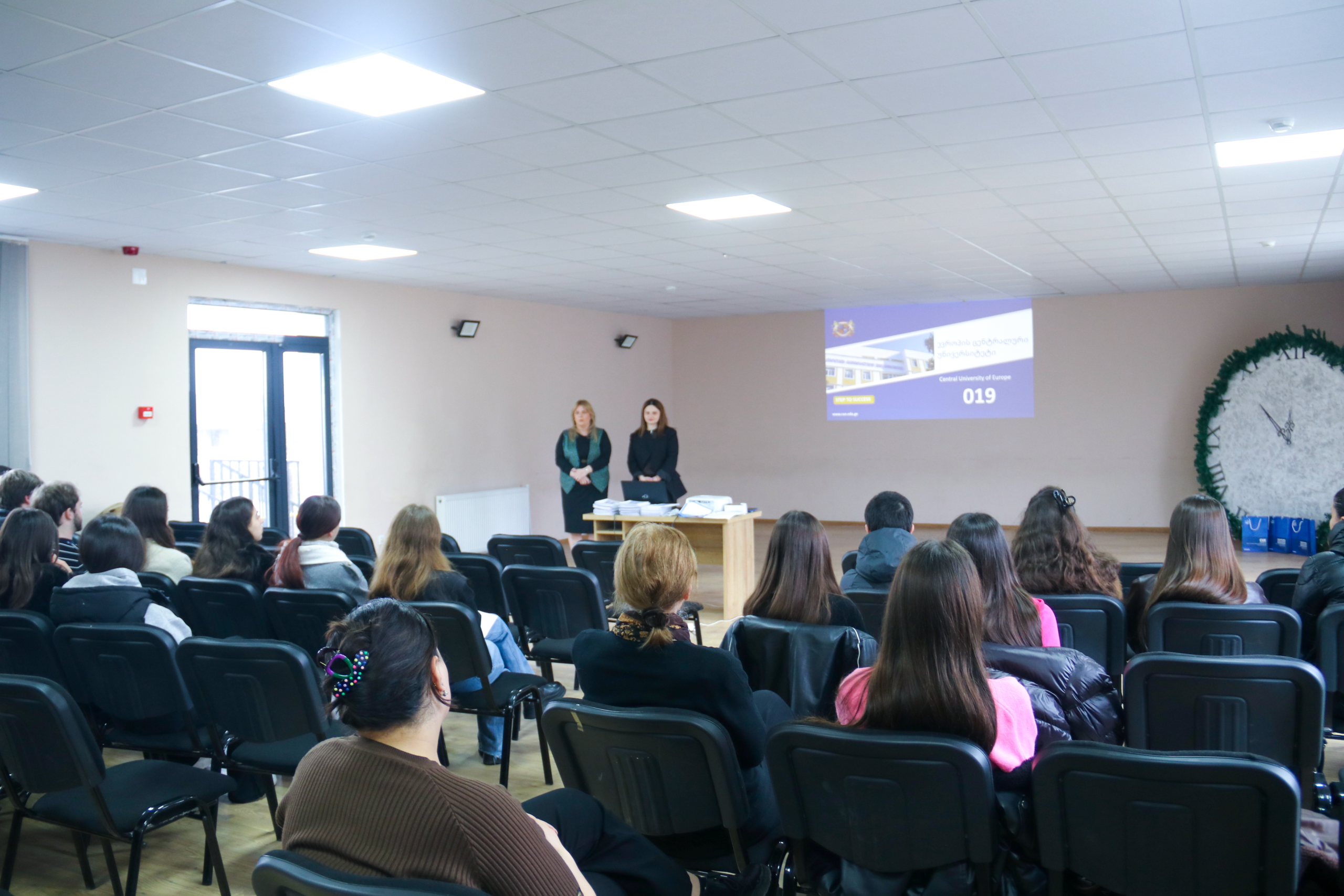 19 თებერვალს “ევროპის ცენტრალური უნივერსიტეტის” სასწავლო პროცესის ადმინისტრირების სამსახურის უფროსმა თინათინ მეფარიშვილმა სამტრედიის საჯარო სკოლების მე-12 კლასის მოსწავლეებისთვის პრეზენტაცია გამართა.