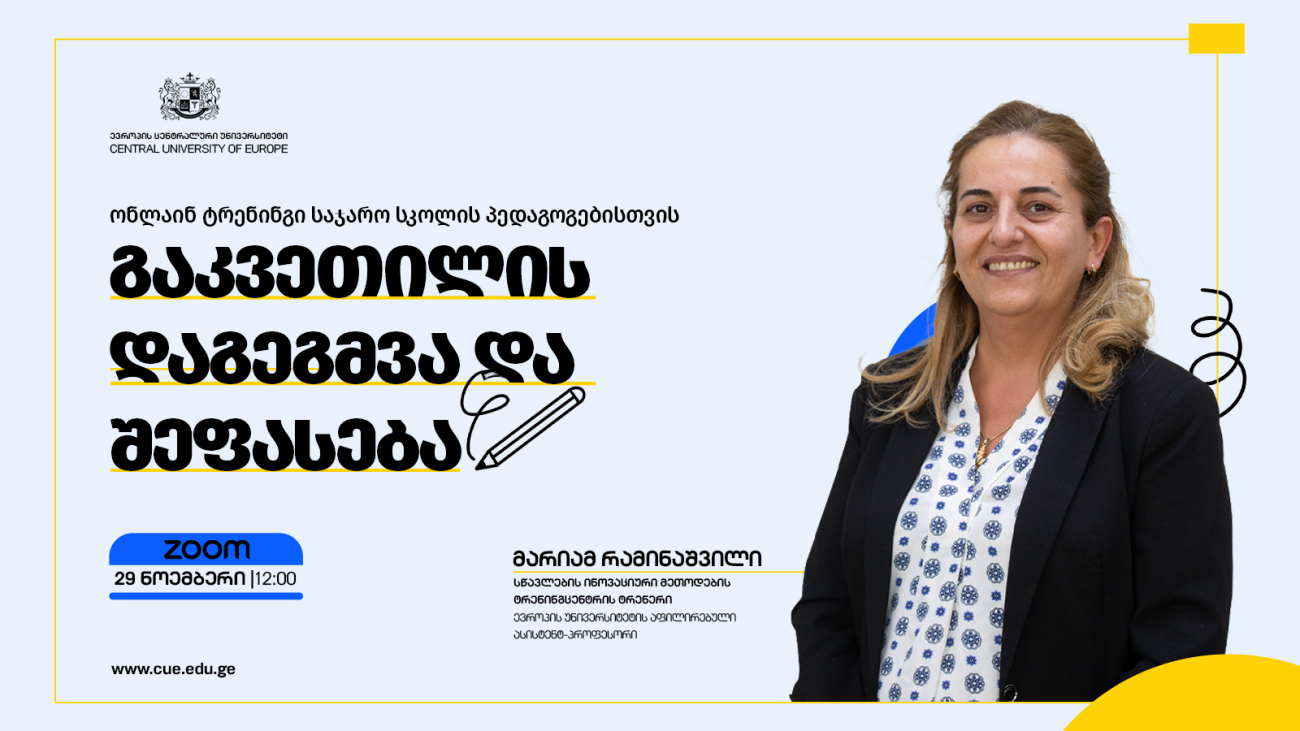 28 ნოე “ევროპის ცენტრალური უნივერსიტეტი” საჯარო სკოლის პედაგოგებისთვის ონლაინ ტრენინგს გამართავს სრულად წაკითხვა