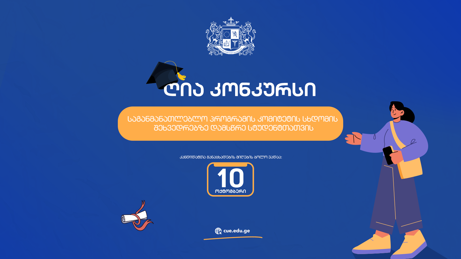 • კანდიდატთა განაცხადების მიღების ვადები: 2025 წლის 25 სექტემბრიდან 10 ოქტომბრის ჩათვლით;